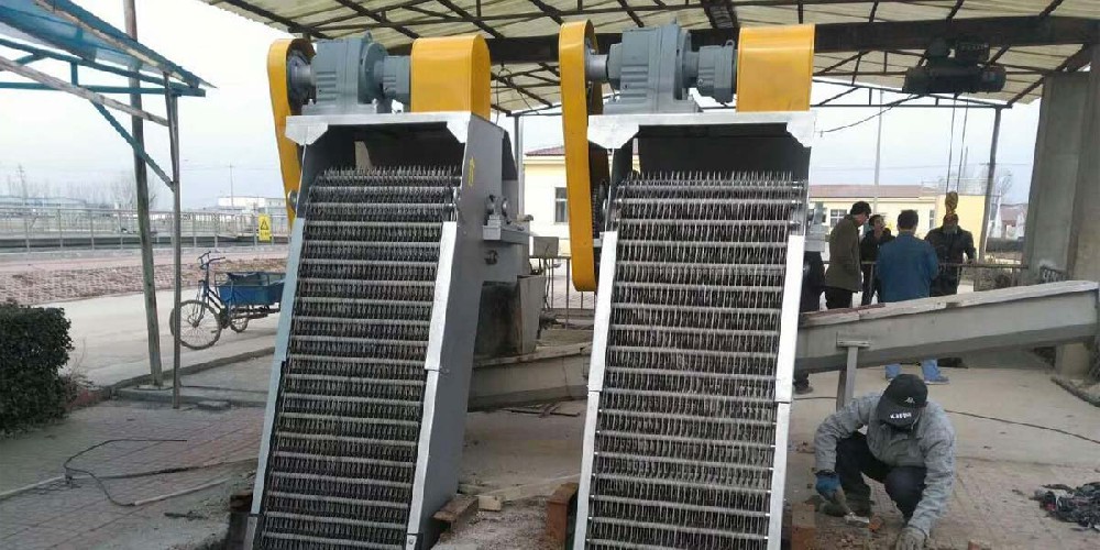 清除附着在拦污栅上杂物(一般称污物)的机械设备。在污物较多的水库或河道上,为保证水电站或泵站得以安全、正常地运行,常需设置清污机,以便在不?;筒环趴账獾奶跫陆星逦邸? 回转齿耙式清污机一般与拦污栅做成整体,动力装置分为液压马达驱动和电动机驱动,回转齿耙式清污机的清污刮板传动装置宜采用回转式输送链。